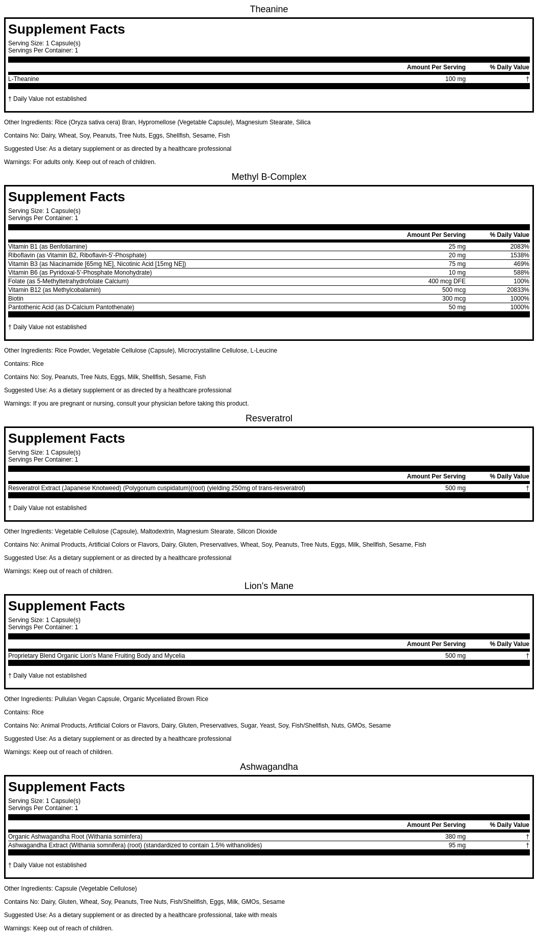 - 100mg Theanine helps decrease stress and uplift mood by increasing levels of GABA, serotonin and dopamine.**