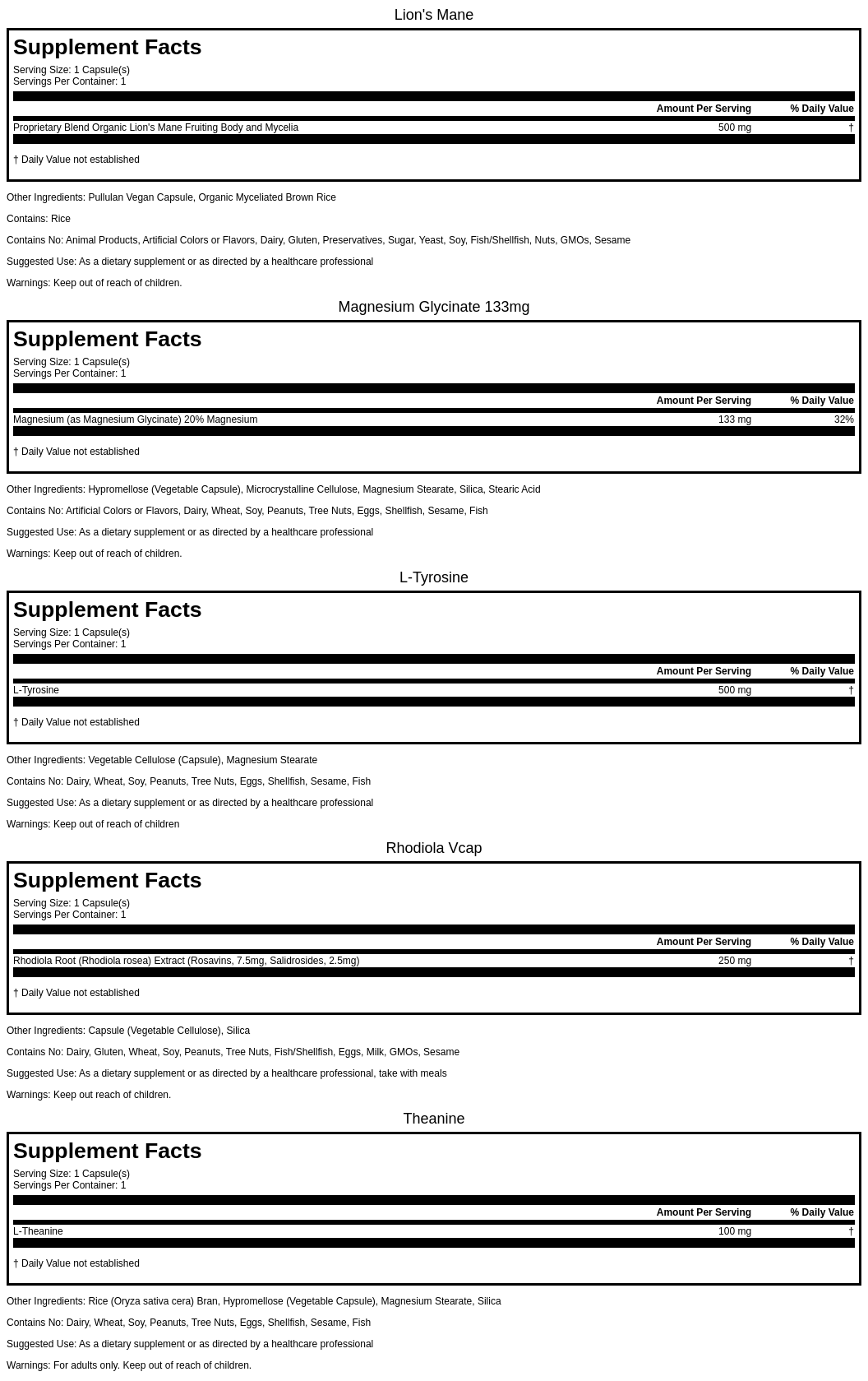 - 100mg Theanine helps decrease stress and uplift mood by increasing levels of GABA, serotonin and dopamine.**