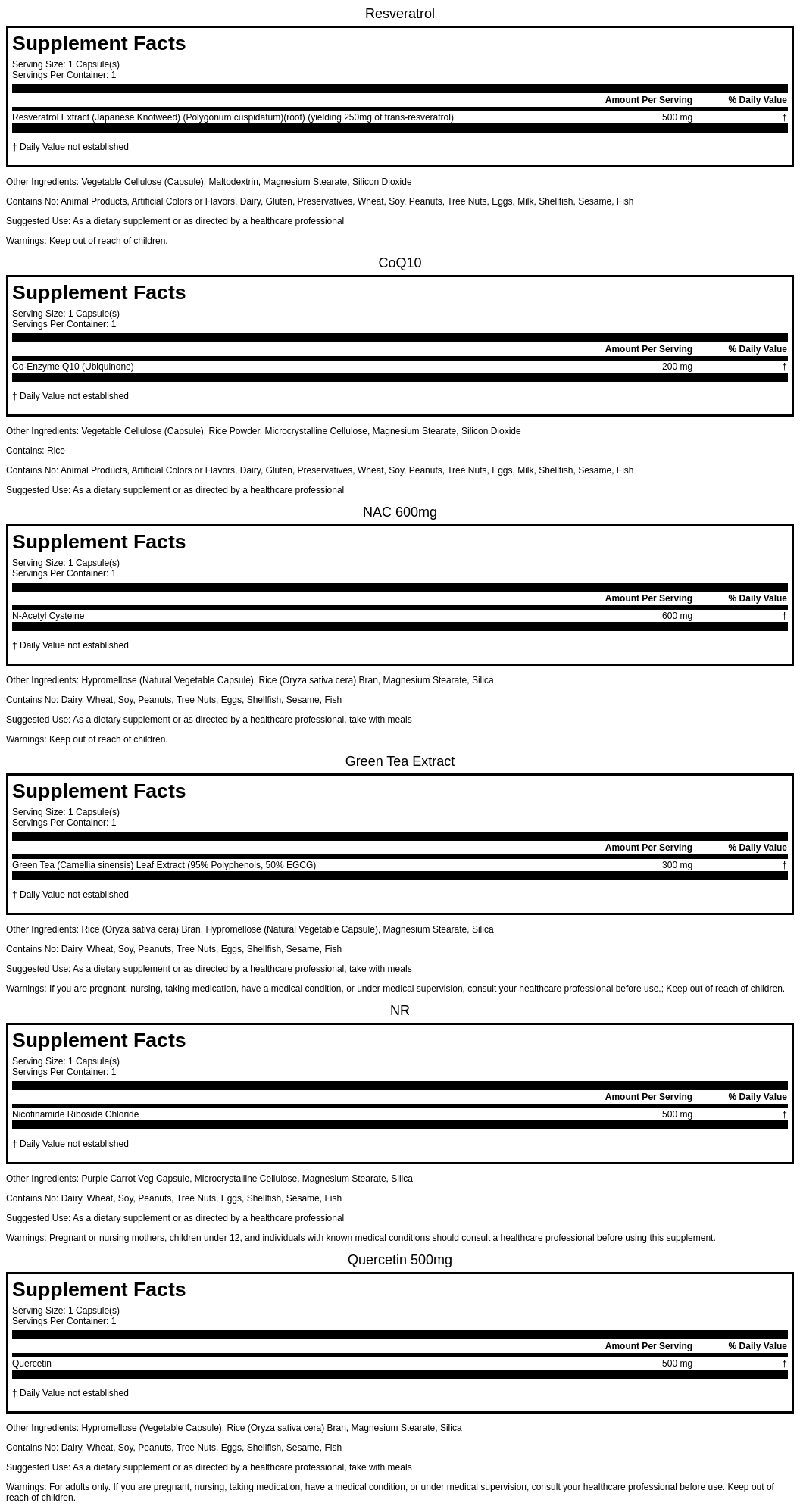 - 200mg Resveratrol is a polyphenol antioxidant derived from the skin of grapes that helps to promote longevity and reduce oxidative stress in the body.**